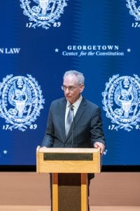 Professor Randy Barnett, Faculty Director of the Georgetown Center for the Constitution, emphasized the sophisticated nature of the dialogue, providing the following summary of the exchange: “It was a remarkably high level exchange on constitutional theory employing the interpretation-construction distinction to explain why so little of what the Court has to wrestle with concerns constitutional meaning; how, as a consequence, originalism does not resolve these matters; the level of generality problem for all constitutional methods; and the distinction between using history to ascertain original meaning and identifying a free-standing ‘history and tradition’ and then using the latter as a (contestable) means of resolving cases where original meaning alone cannot.”