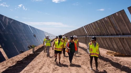 Bureau of Land Management staff walk around a solar construction site in Arizona in 2023.
