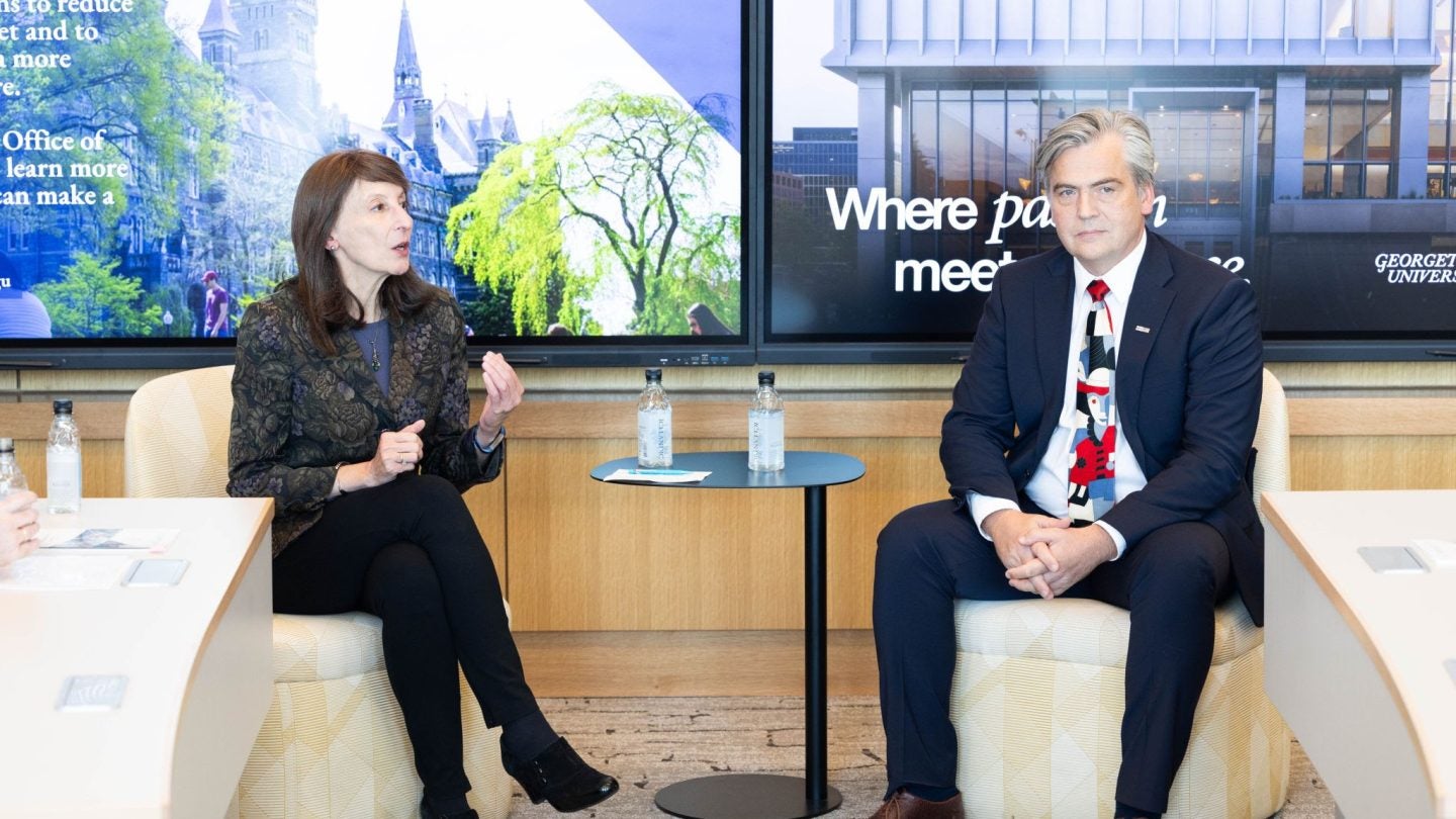 Georgetown Law, the Institute of International Economic Law, and the Center on Inclusive Trade and Development hosted Deputy Director-General Johanna Hill of the World Trade Organization for a fireside chat with Professor and Faculty Co-Director Gregory Shaffer on the rise of AI and other digital technologies and their transformative impact on international trade.