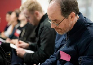 Photos: Before meeting clients, Georgetown Law’s Human Rights Institute volunteers participate in an orientation meeting on Sunday, December 30, 2018, in Dilley, Texas (Darren Abate/AP Images for Georgetown Law).