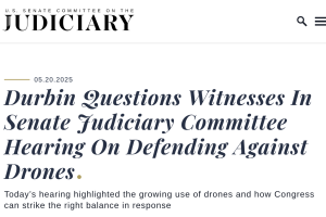 Faculty Director Laura Donohue testified during a Senate Judiciary Committee hearing entitled "Defending Against Drones: Setting Safeguards for Counter Unmanned Aircraft Systems Authorities." Donohue spoke of the balance of protecting privacy and civil liberties, as well as security, when using unmanned aircraft systems. She also noted that the way to balance civil liberties concerns is to make sure there are restrictions.