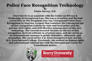Senior Associate Clare Garvie conducted a training on police use of face recognition technology to the Ninth Judicial Circuit 2018 Defender Summer School at Barry University in Orlando, FL.