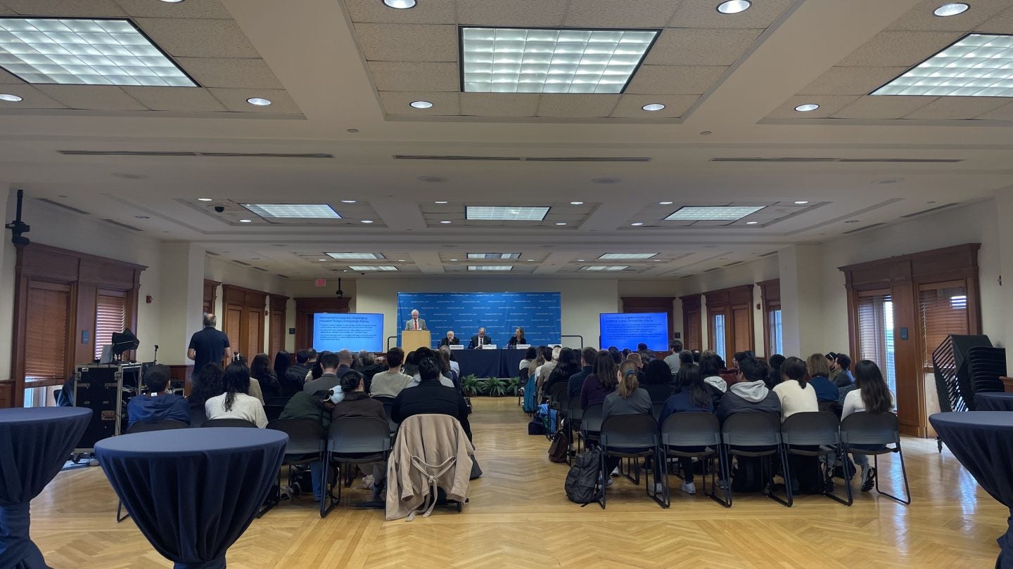 Hotung 2nd Floor Lobby is located in the Eric E. Hotung International Law Center Building, with the security entrance on the Eleanor Holmes Norton Green side of the building. The space is multi-purpose and can accommodate a variety of events, including lectures, drives, fairs, and catering. The space is outfitted with audio items like microphones and speakers. While this space does not have overhead projection or music, you can request TV monitors and a laptop to display materials and play music.